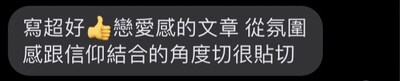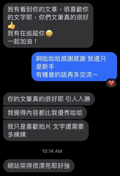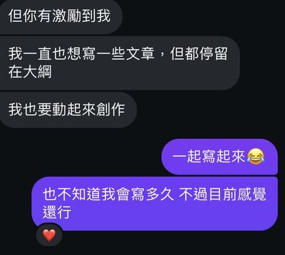 所以,如果你也希望出現在這個缺愛小天地,歡迎給我一些正面回饋跟情緒價值(什麼鬼要求)。