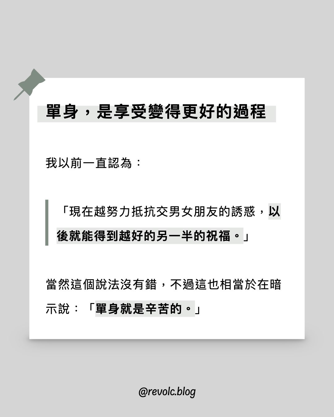 然而,單身不是重點,讓自己成為「更好的人」才是關鍵。