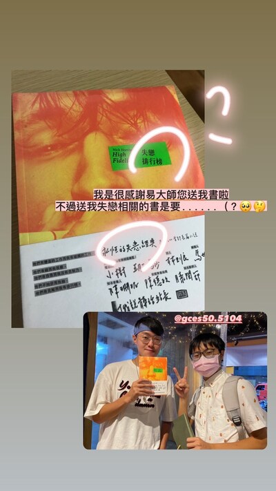 我是很感謝易大師您送我書啦 不過送我失戀相關的書是要……(?🥺🤔