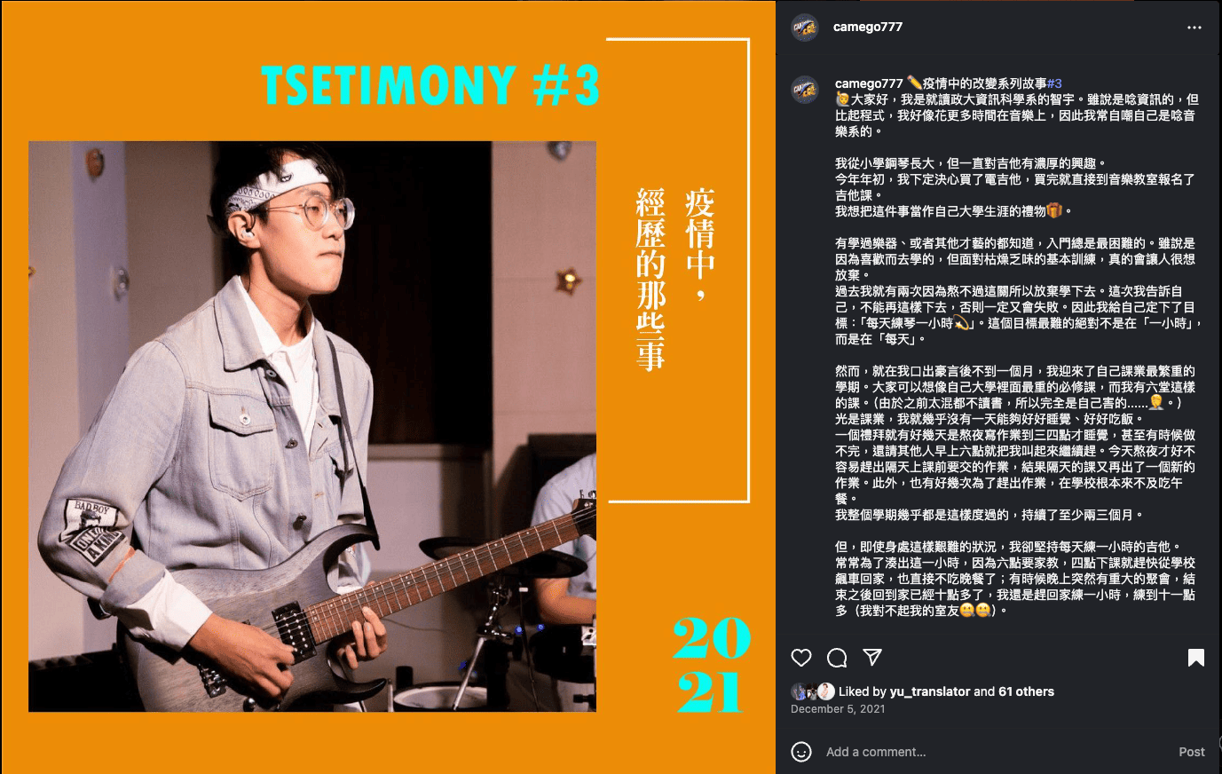 以下文字收錄在「Camego IG 見證文」——「疫情中的改變系列故事 #3」。