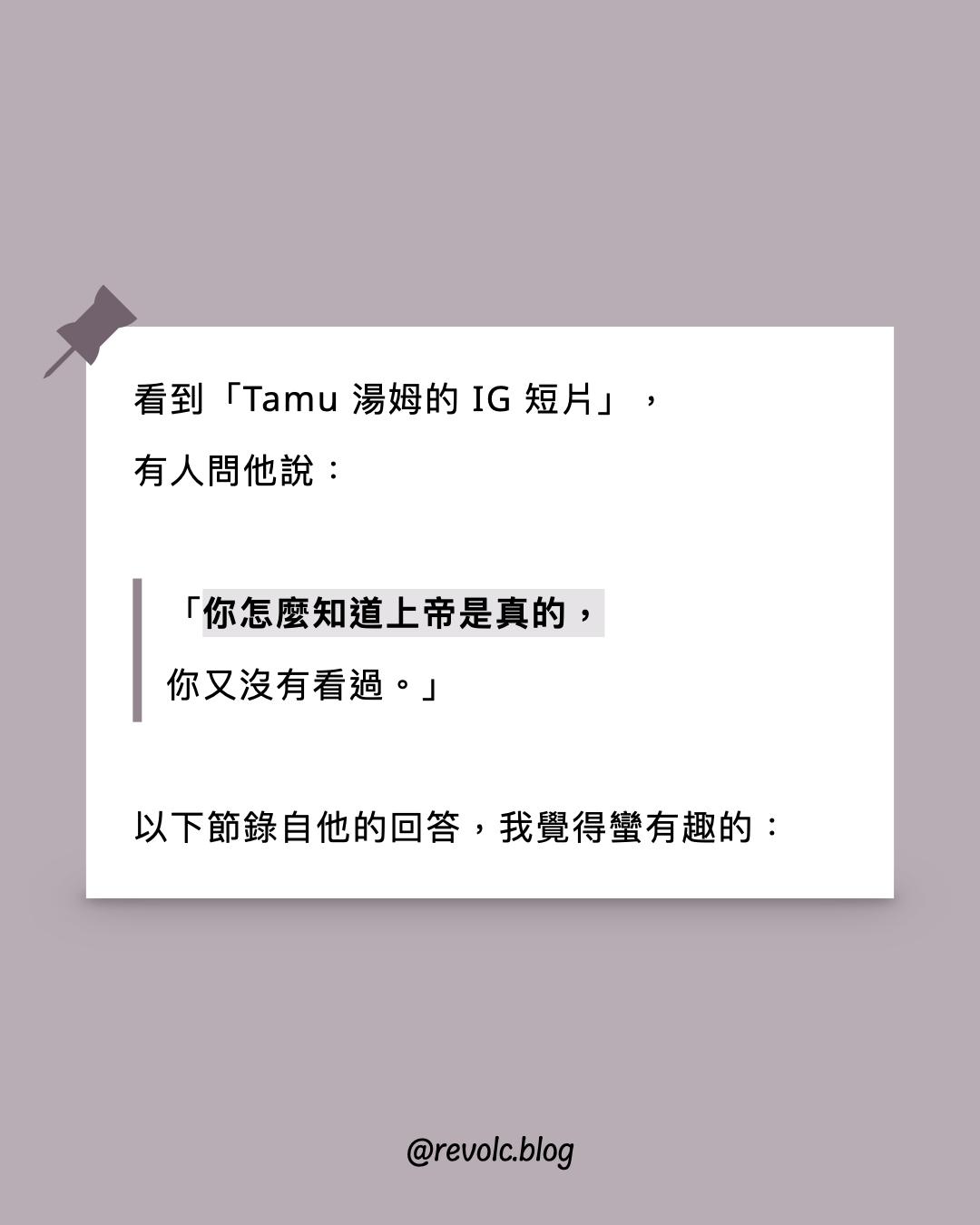 看到「Tamu 湯姆的 IG 短片」,有人問他說: