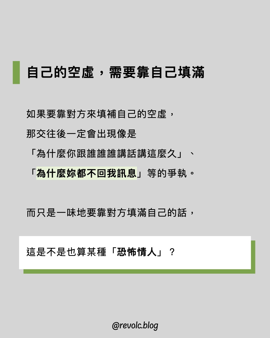 而只是一味地要靠對方填滿自己的話,這是不是也算某種「恐怖情人」?