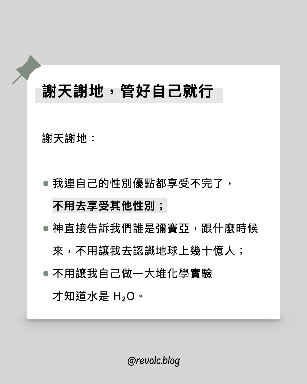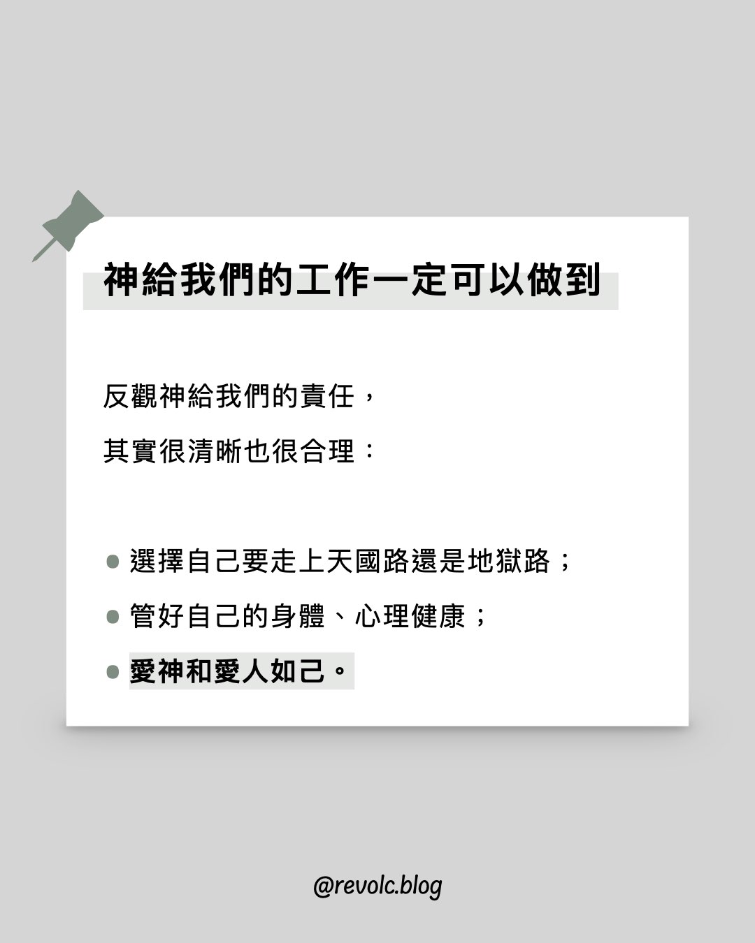 這些事情就已經夠我們忙一輩子了。顧好自己不要去討厭人、罵離開信仰的人,這些看似簡單的事,對我們來說卻一點都不容易。