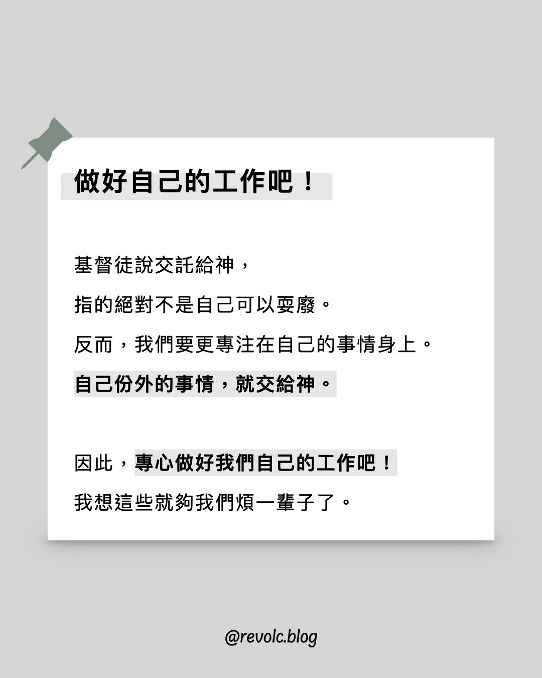 基督徒說交託給神,指的絕對不是自己可以耍廢。