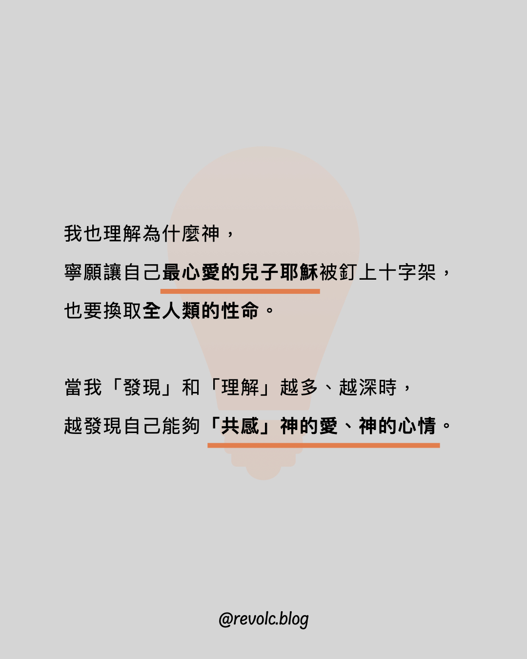 當我「發現」和「理解」越多、越深時,越發現自己能夠「共感」神的愛、神的心情。