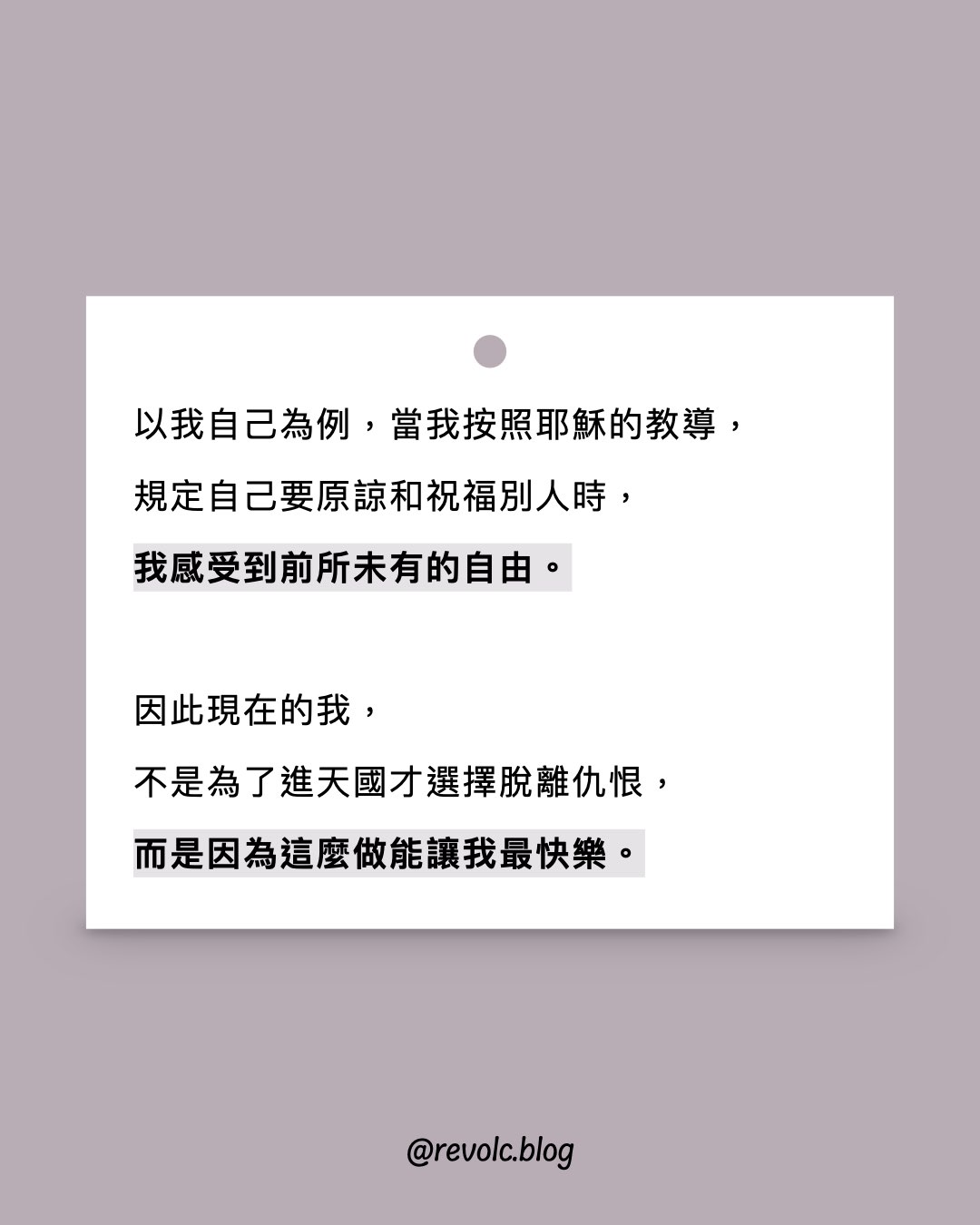 因此現在的我,不是為了進天國才選擇脫離仇恨,