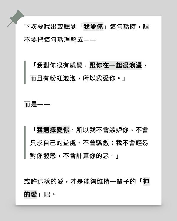 或許這樣的愛,才是能夠維持一輩子的「神的愛」吧。
