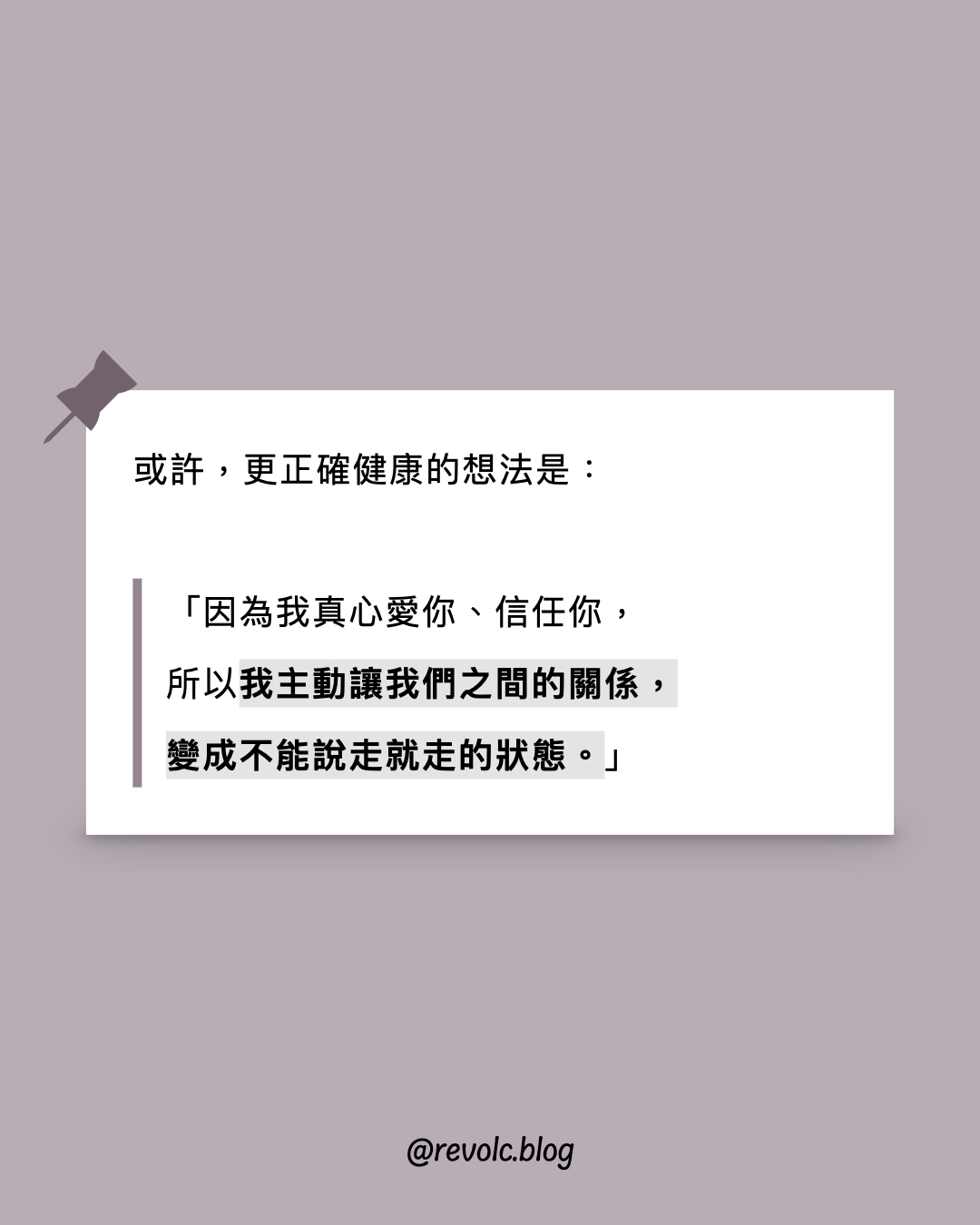 「因為我真心愛你、信任你,所以我主動讓我們之間的關係,變成不能說走就走的狀態。」