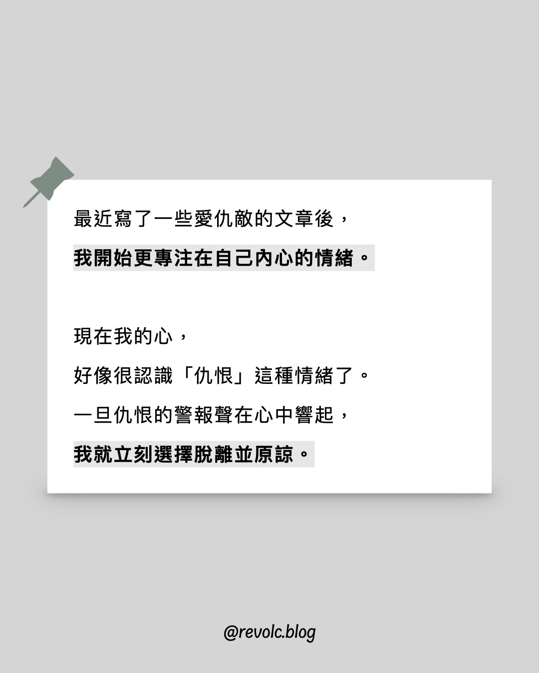 最近寫了一些愛仇敵的文章後,我開始更專注在自己內心的情緒。