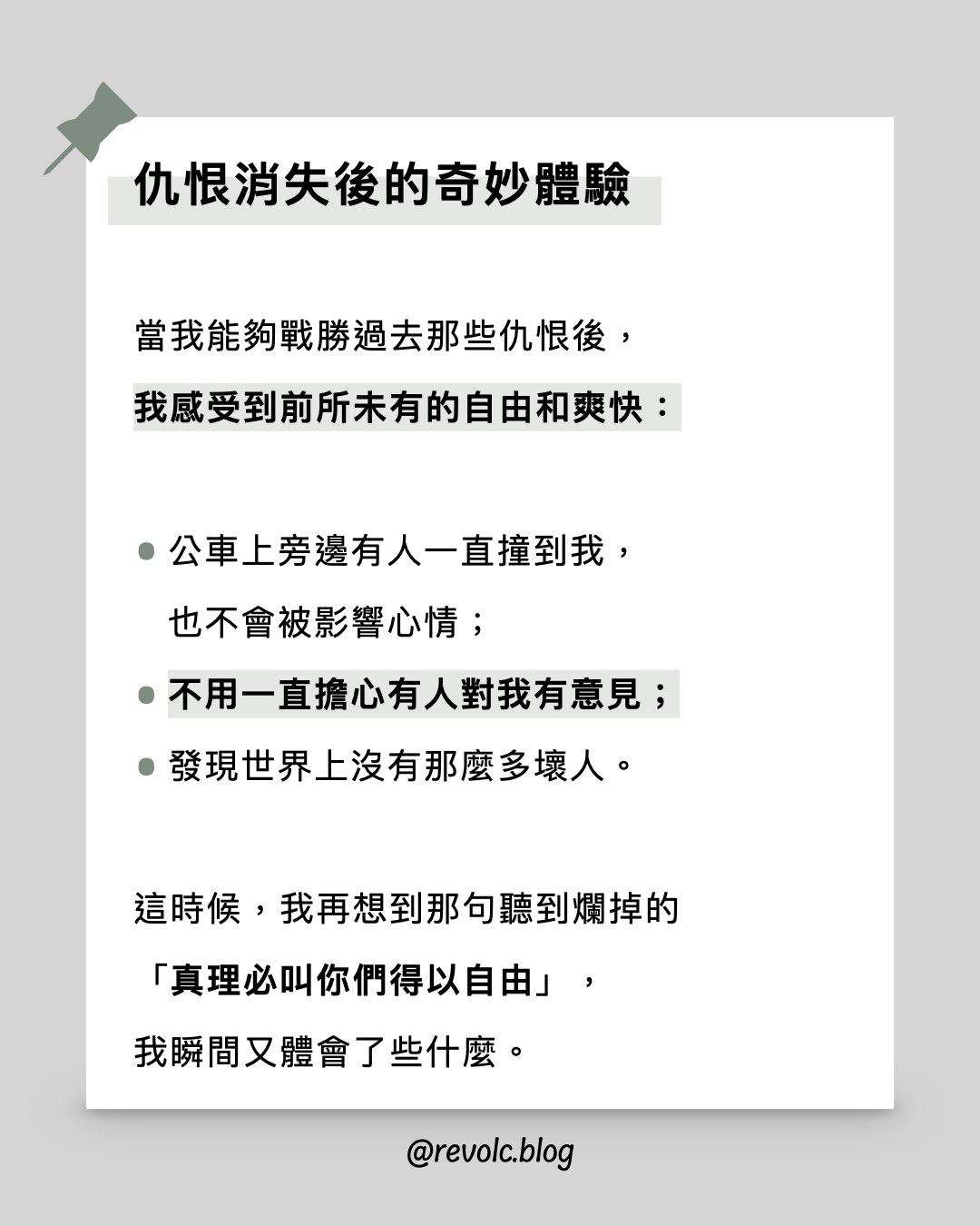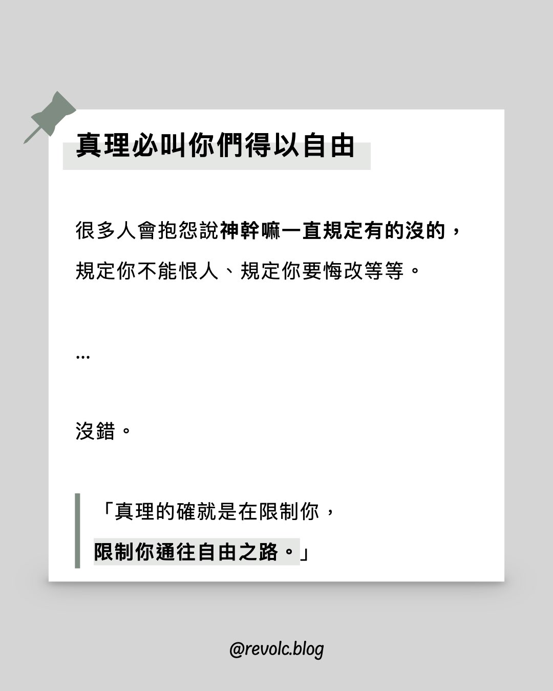 這時候,我再想到那句聽到爛掉的「真理必叫你們得以自由」,我瞬間又體會了些什麼。