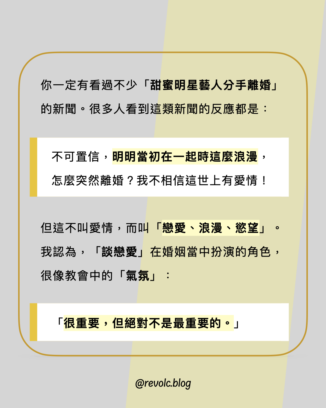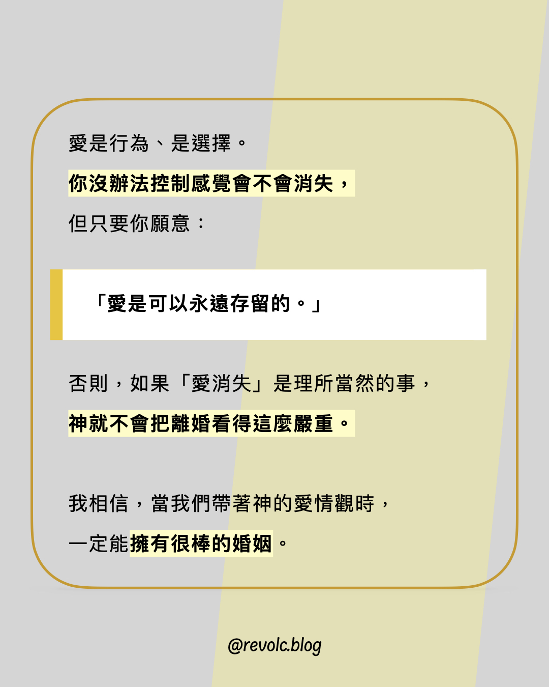 否則,如果「愛消失」是理所當然的事,神就不會把離婚看得這麼嚴重。