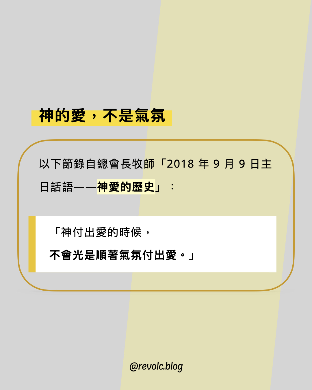 「神付出愛的時候,不會光是順著氣氛付出愛。」