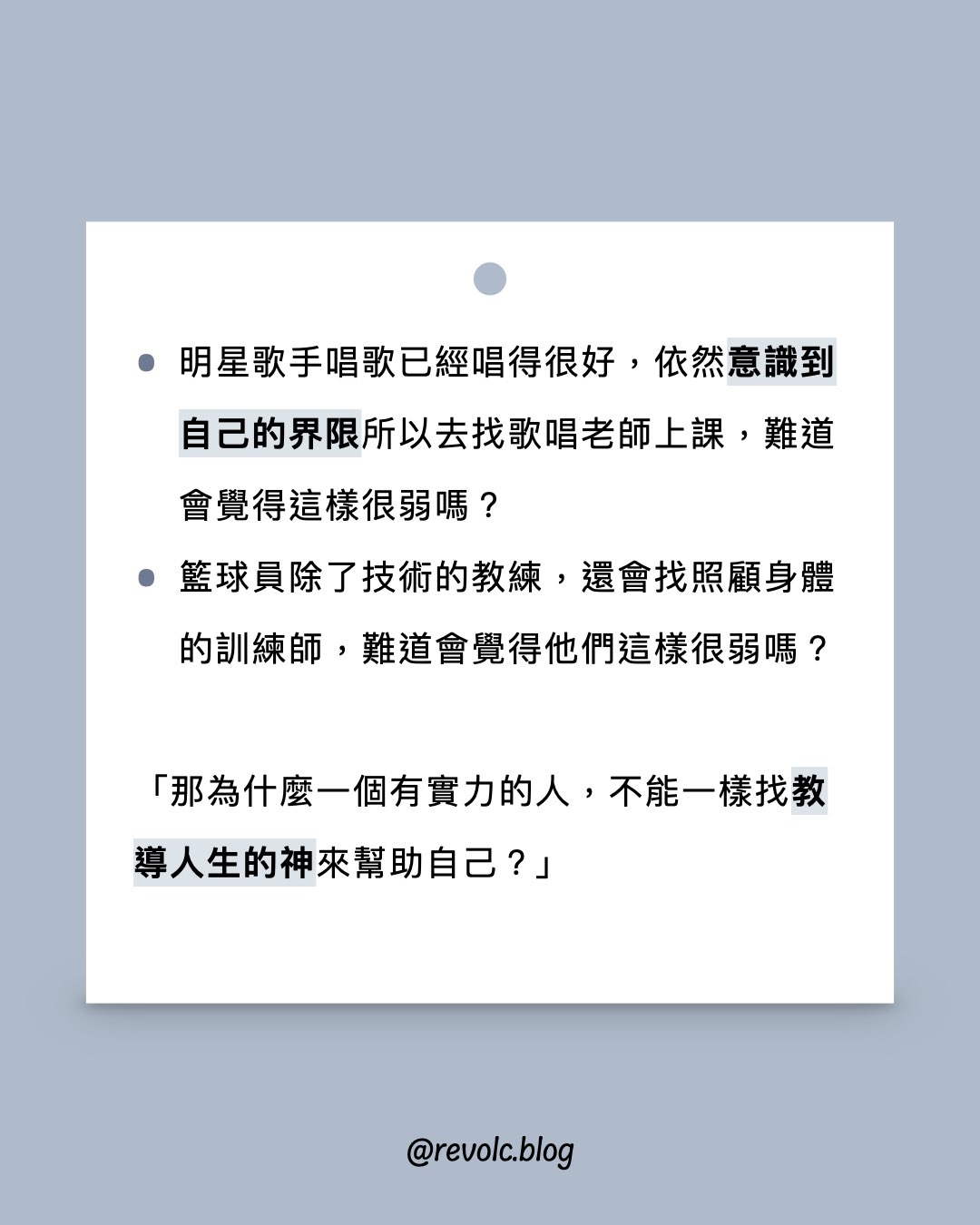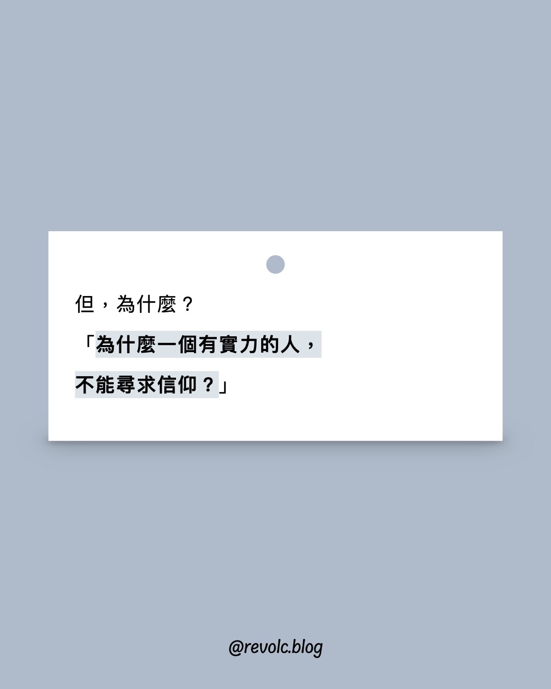 「那為什麼一個有實力的人,不能一樣找教導人生的神來幫助自己?」