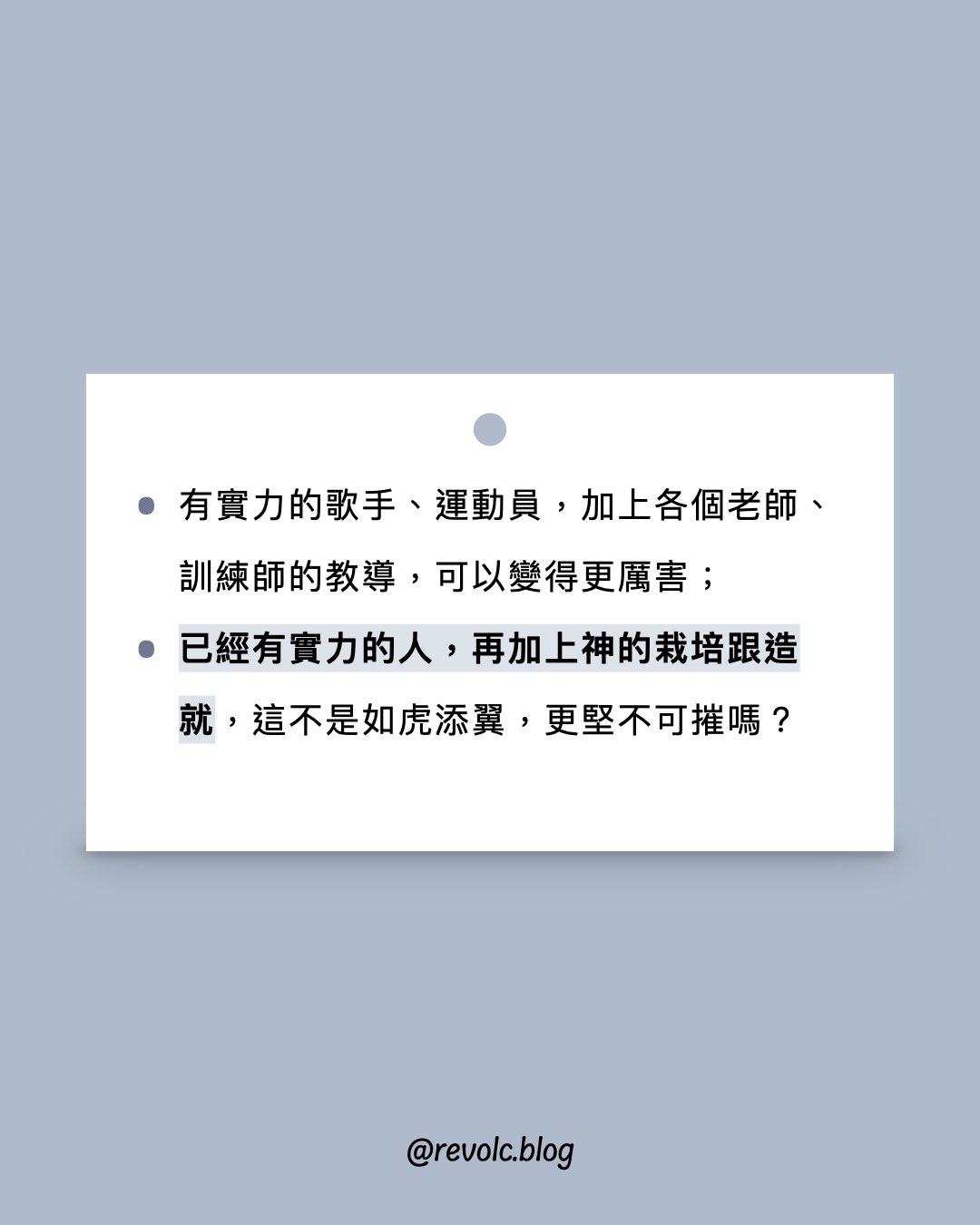 - 已經有實力的人,再加上神的栽培跟造就,這不是如虎添翼,更堅不可摧嗎?