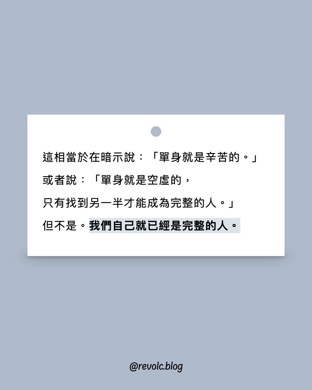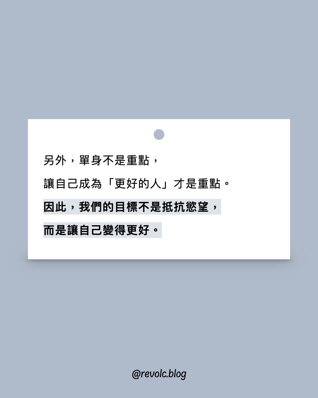 另外,單身不是重點,讓自己成為「更好的人」才是重點。