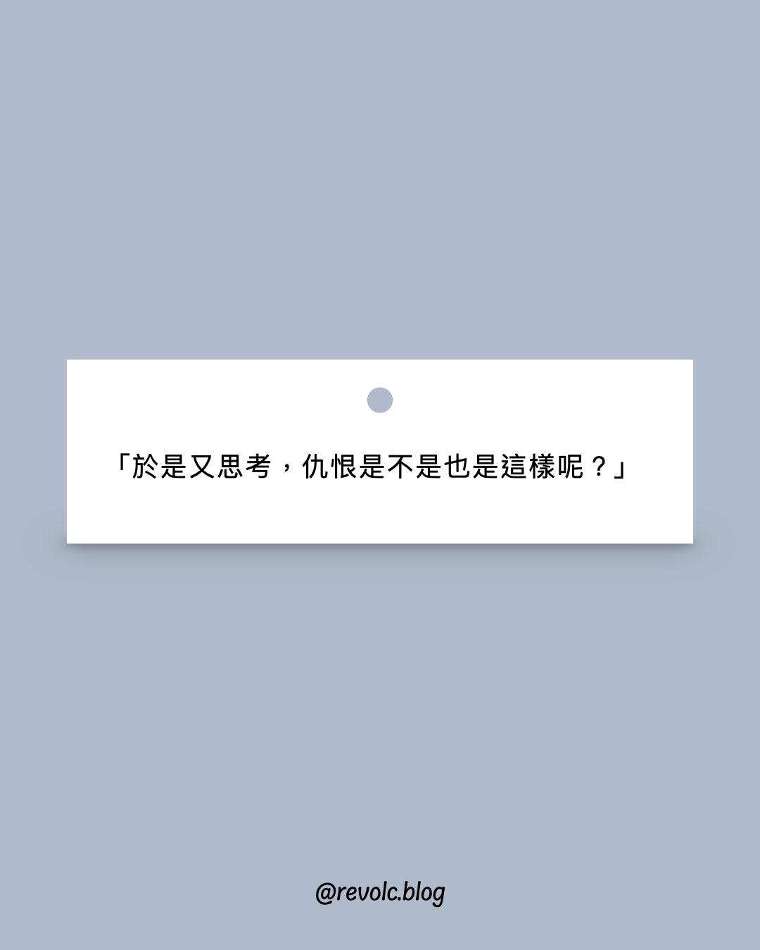 只有能夠消化這份仇恨,用愛對待仇敵的人,仇恨才不會繼續傳播。