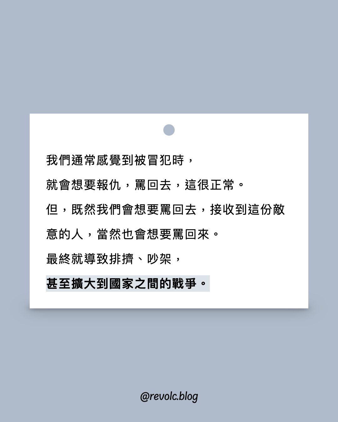 我們通常感覺到被冒犯時,就會想要報仇,罵回去,這很正常。
