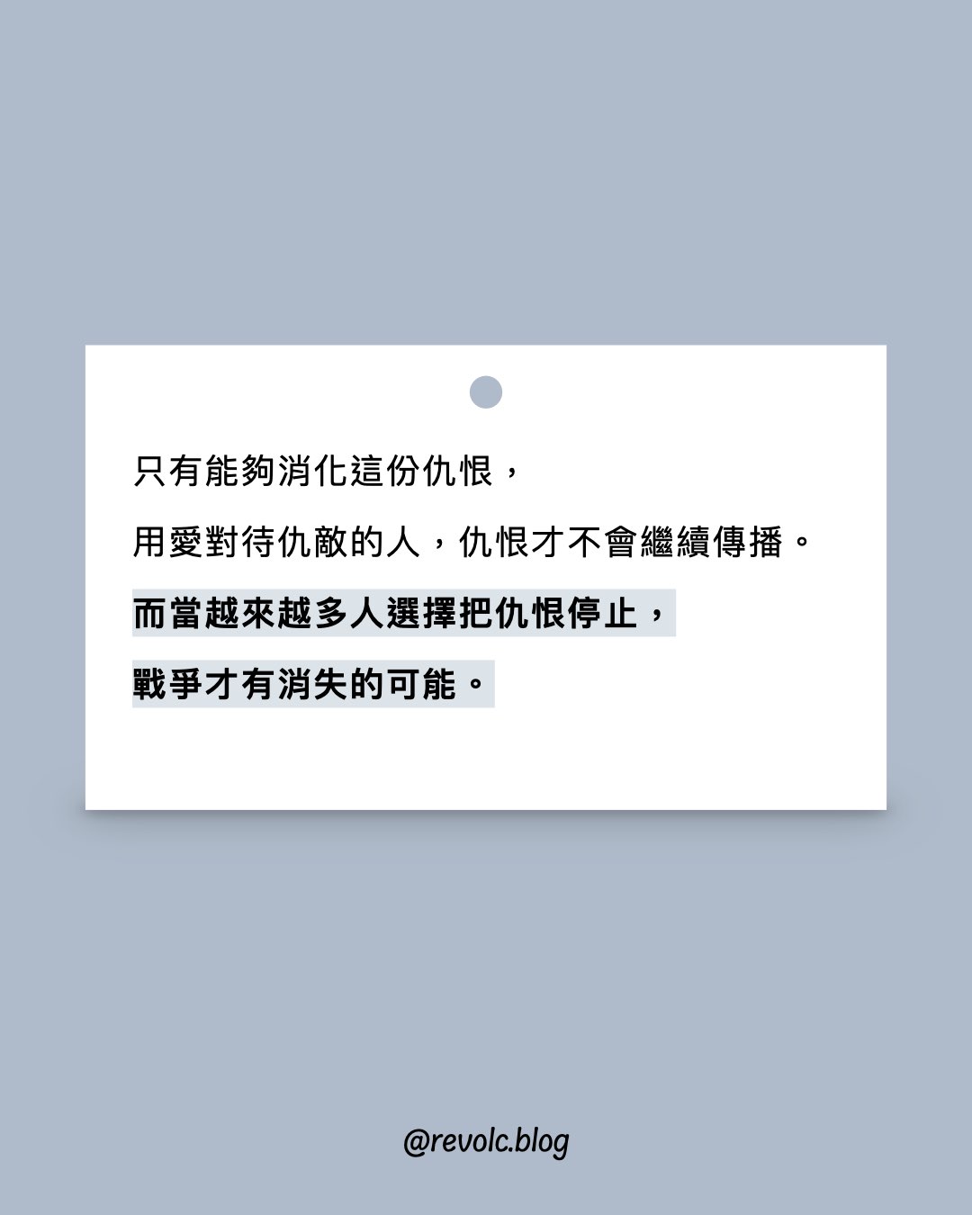 而當越來越多人選擇把仇恨停止,戰爭才有消失的可能。