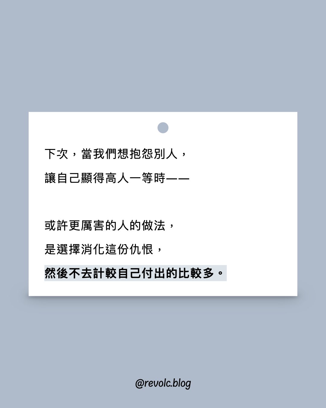或許更厲害的人的做法,是選擇消化這份仇恨,然後不去計較自己付出的比較多。