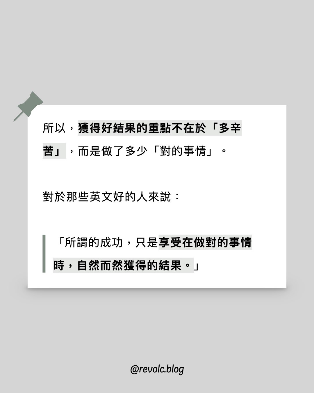 所以,獲得好結果的重點不在於「多辛苦」,而是做了多少「對的事情」。