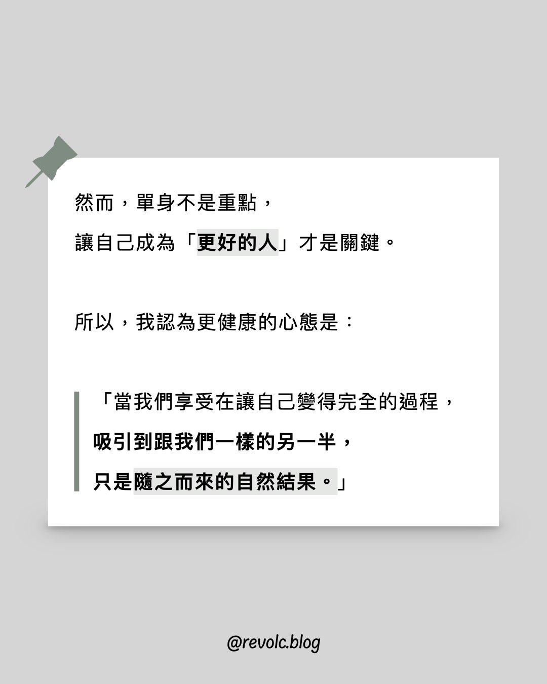 然而,單身不是重點,讓自己成為「更好的人」才是關鍵。