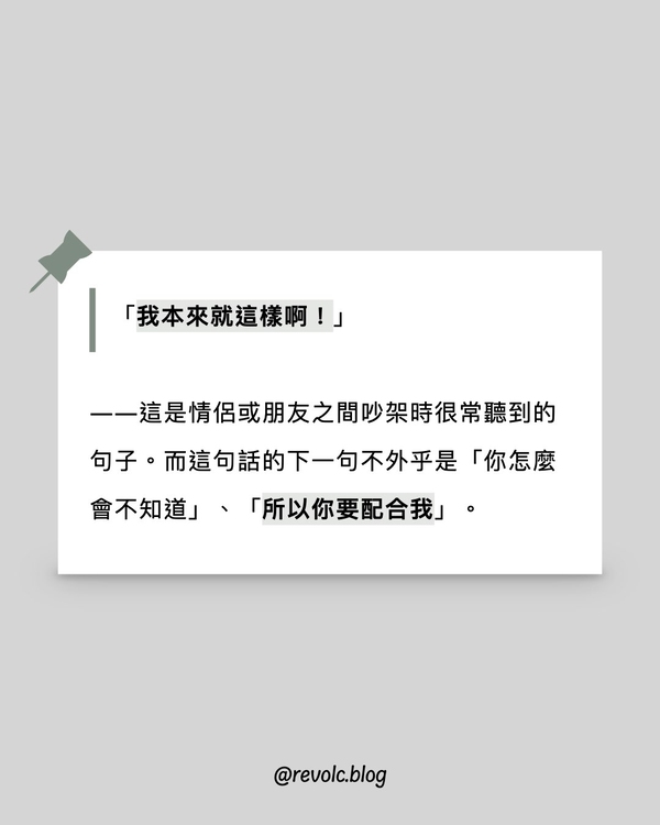 ——這是情侶或朋友之間吵架時很常聽到的句子。而這句話的下一句不外乎是「你怎麼會不知道」、「所以你要配合我」。