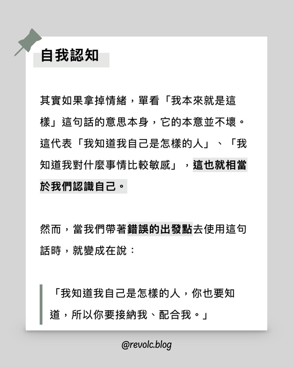 其實如果拿掉情緒,單看「我本來就是這樣」這句話的意思本身,它的本意並不壞。