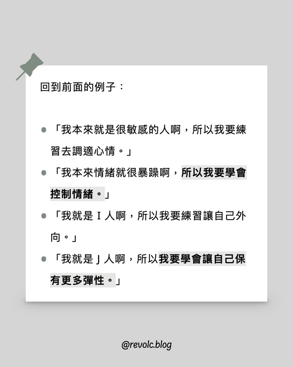 - 「我就是 J 人啊,所以我要學會讓自己保有更多彈性。」