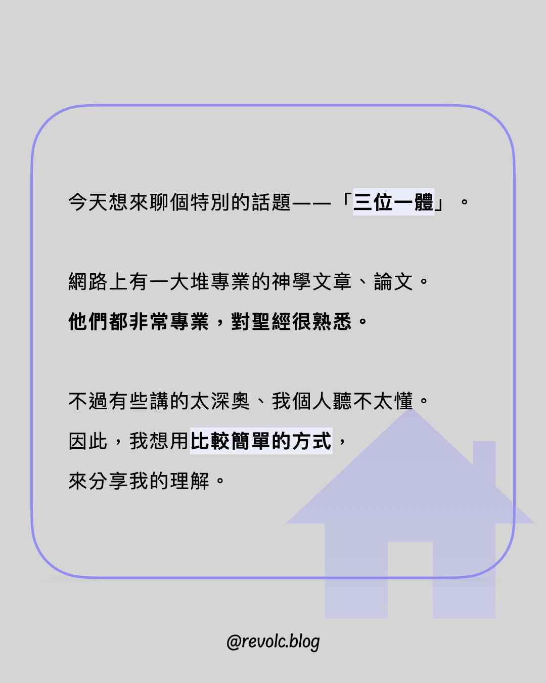 今天想來聊個特別的基督教話題,那就是——「三位一體」。